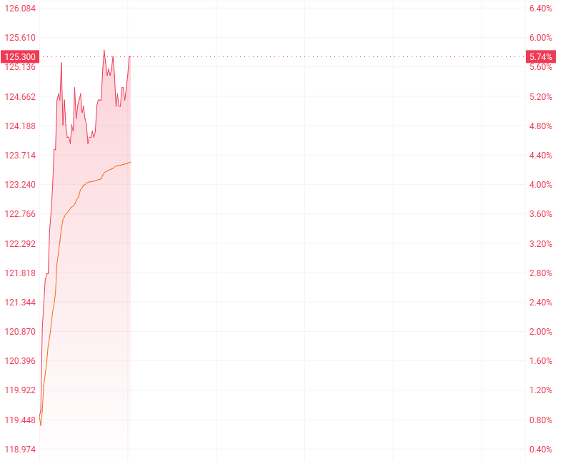 百度集团-SW(09888.HK)今日股价表现活跃,截至发稿,涨5.74%,报125.30港元。