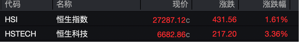 10月2日,A股因国庆中秋假期休市,港股在10月1日休市后开市交易。当天,继隔夜中概股走强后,恒生指数、恒生科技指数双双高开高走,截至收盘,恒生指数涨1.61%,恒生科技指数涨3.36%。