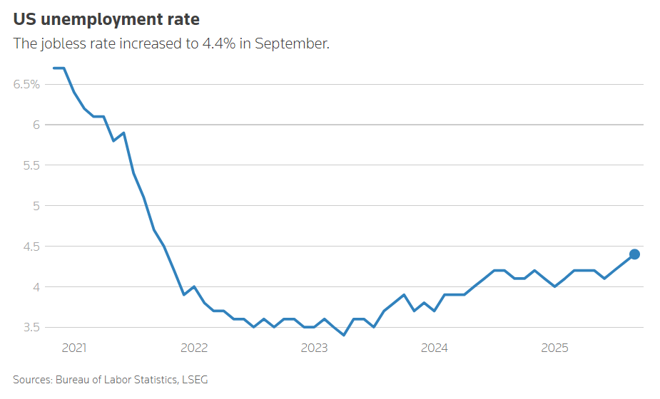 “这份报告如同投射在严重分裂的美联储面前的一场‘罗夏墨迹测验’,”Realtor.com首席经济学家Jake Krimmel分析称,“鹰派将指出稳健的就业增长与近4%的年薪涨幅,主张应避免过早降息;鸽派则强调失业率已显现警示信号——9月逼近4.5%意味着11月中旬可能已达临界,12月形势更不容乐观。”