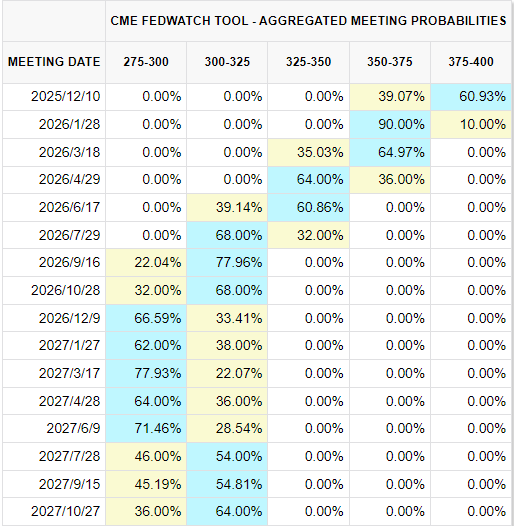 根据芝商所的FedWatch工具测算,金融市场对降息的预期概率已从数据公布前的约30%升至周五的约40%。该工具通过联邦基金期货交易数据预测利率走势。