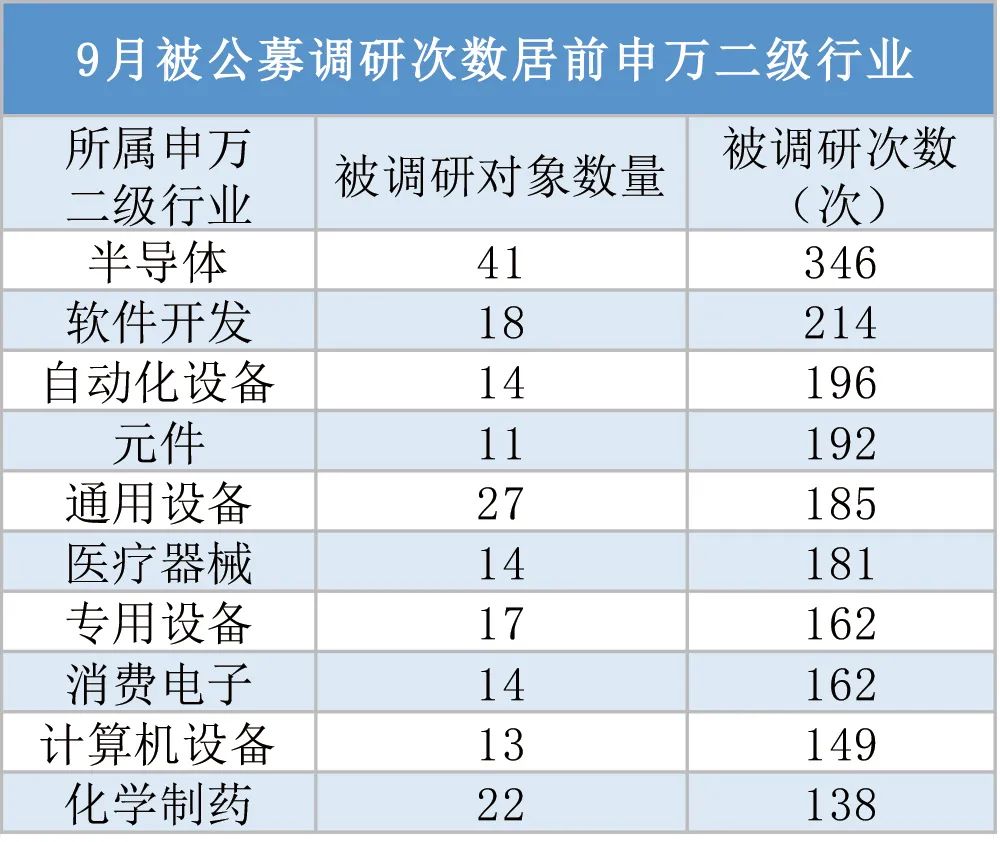 具体来看,半导体是机构的重点掘金方向。据统计,三季度半导体板块的公私募调研频次超过4000次,而且9月公私募调研重点亦是半导体板块。