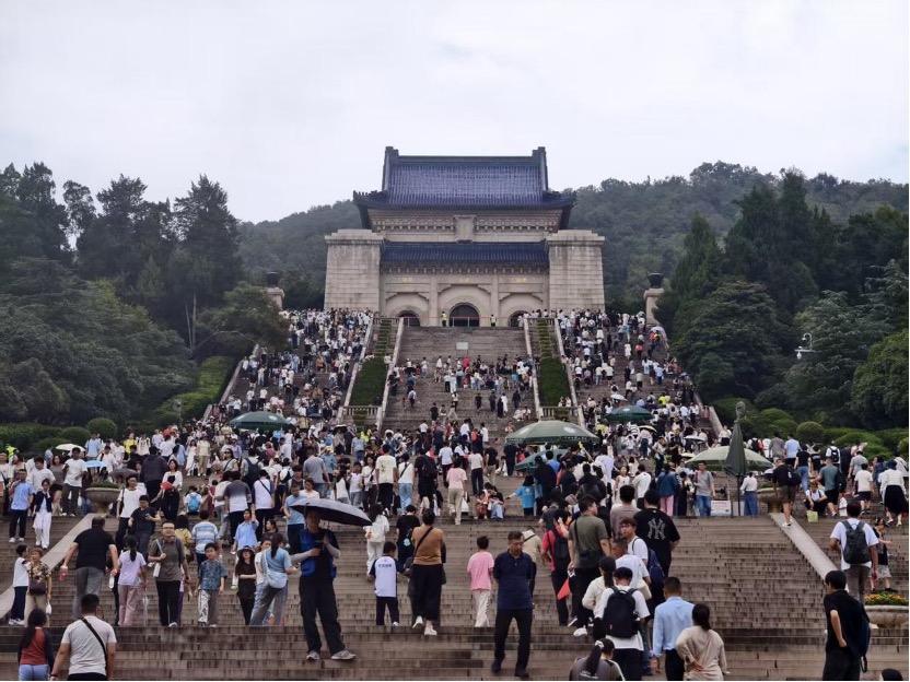 记者在中山陵景区看到,尽管景区内人流如织,但科学的预约管理和高效的交通调度保障了游览秩序,游客可以在更加舒朗的环境中漫步,感受紫金山的历史与秋韵。