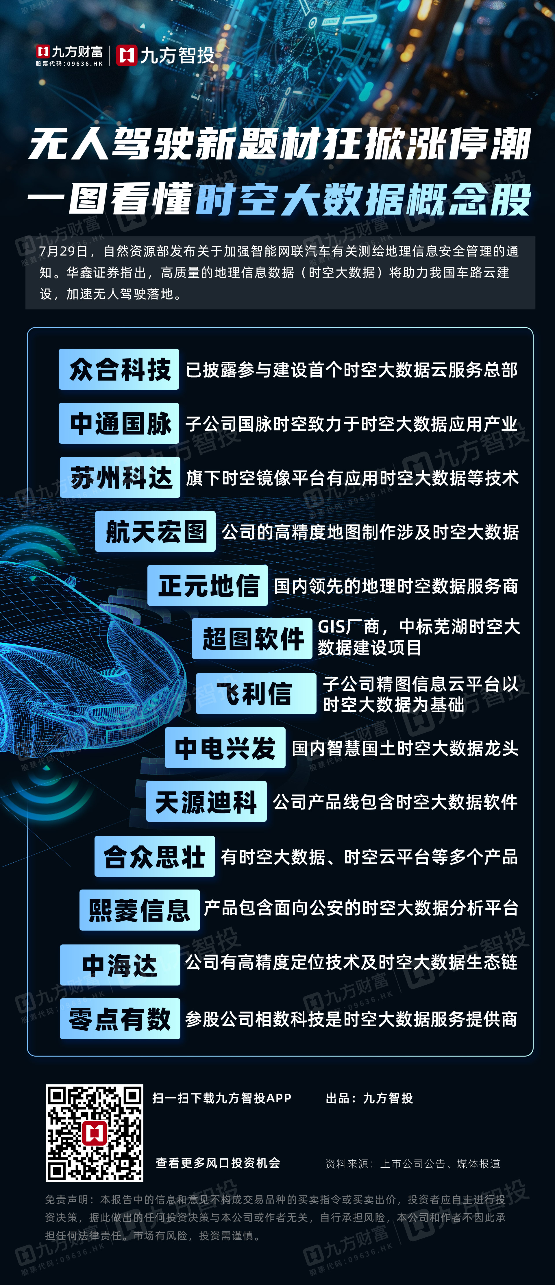 图说A股|无人驾驶新题材狂掀涨停潮!一图看懂时空大数据概念股