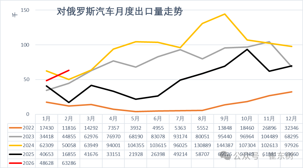 俄罗斯市场中国车企防风险意识提升,2025年俄罗斯国内销量下滑不大,但我们出口去库存力度很大。2026年1-2月我们对俄罗斯的出口恢复较大。