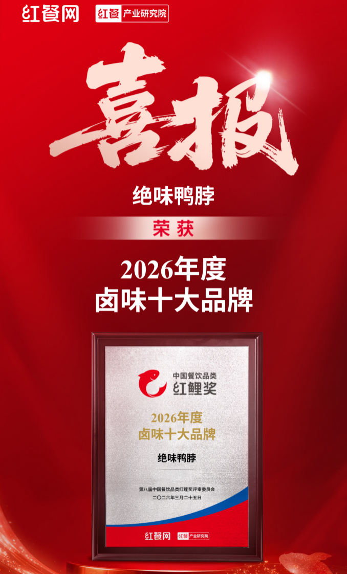红餐网相关评审专家表示,绝味鸭脖在品牌运营中,精准把握了卤味行业的发展趋势,以“鲜”为核心实现了品牌传播、场景布局、跨界合作的全方位创新,其实践不仅让品牌自身的市场竞争力与用户粘性持续提升,更以可复制、可落地的创新模式,为卤味行业的品牌化、品质化、场景化升级提供了标杆经验。此次斩获第八届中国餐饮品类红鲤奖2026年度卤味十大品牌第一名,既是行业与市场对绝味鸭脖过往品牌运营成果的双重认可,更是品牌持续创新发展的全新起点。