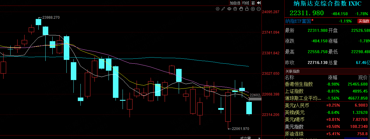 再看看美股纳斯达克的走势,今天晚上老哥可不能崩啊,一旦崩了下周一全球股市又该遭殃了。
