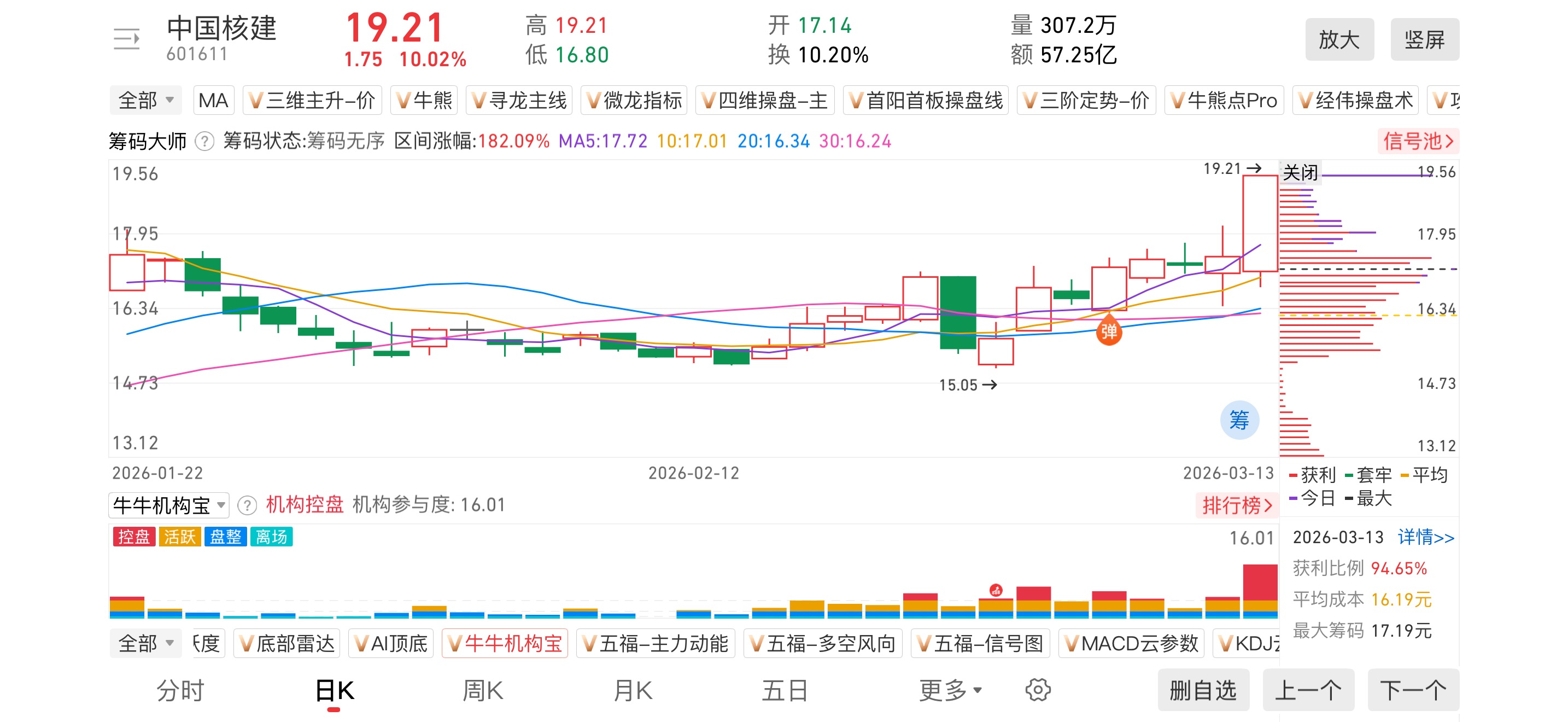 2)20260313-中国核建-601611-【筹码大师】和【牛牛机构宝】-近期出现弹信号且底部量柱由绿转红