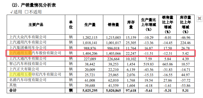 在上汽集团2023年报中,上汽集团称上汽通用五菱已成为在合资模式下打造自主品牌的中国汽车企业典范。2023年,上汽通用五菱销量超过140万辆。