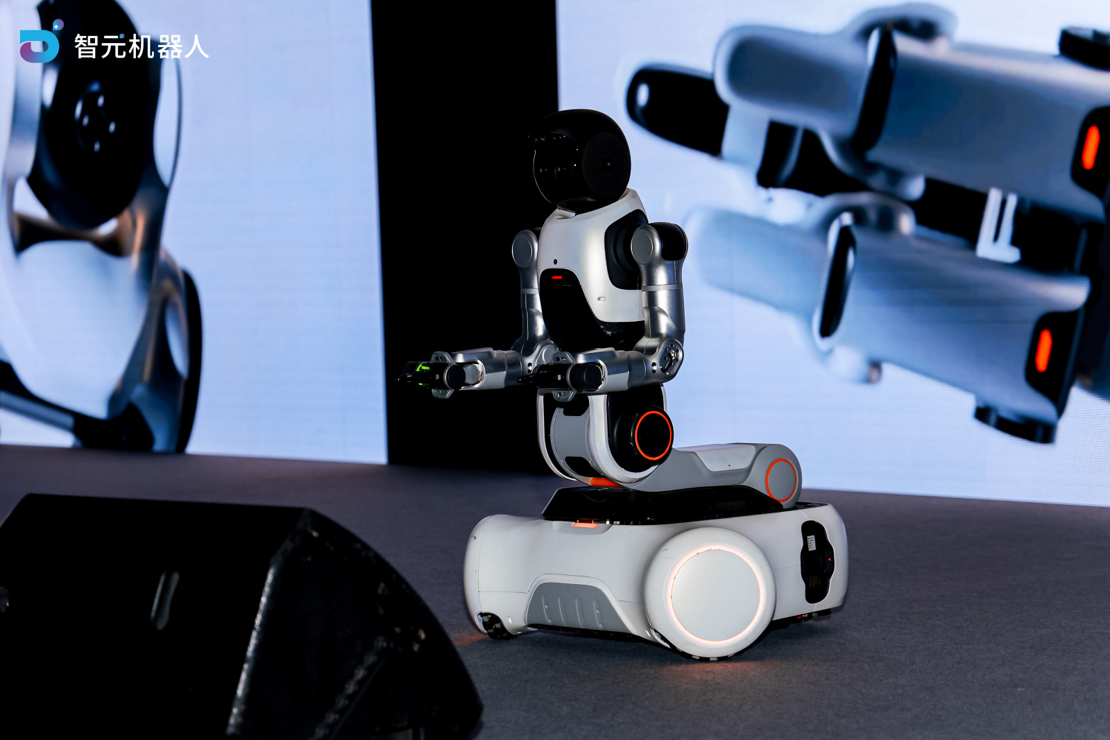 值得一提的是,智元机器人联合创始人兼CTO彭志辉携手新产品“灵犀X2-W”亮相会场。该款产品具备全向移动底盘、高自由度双臂及仿生手腕等核心特性,为基于X2平台衍生、专为“作业智能”打造的轮式双臂机器人原型。