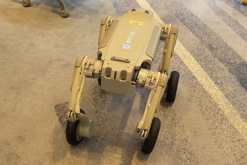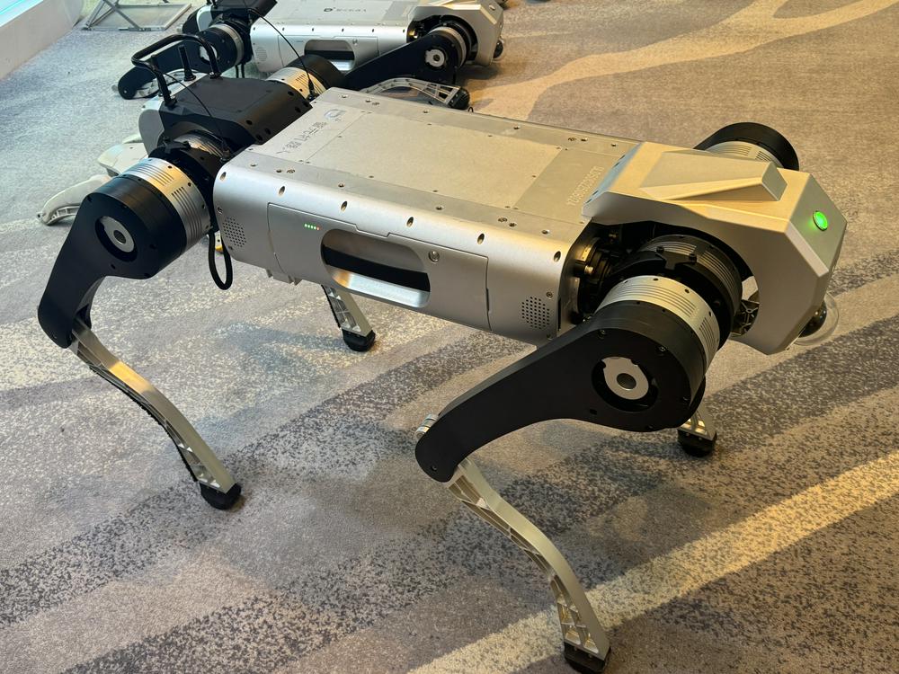 记者注意到,除已发布的D1系列机型外,智元还展出了多款尚未正式推出的四足机器人产品,其中包括配备滑轮的版本以及体型明显更大的型号。
