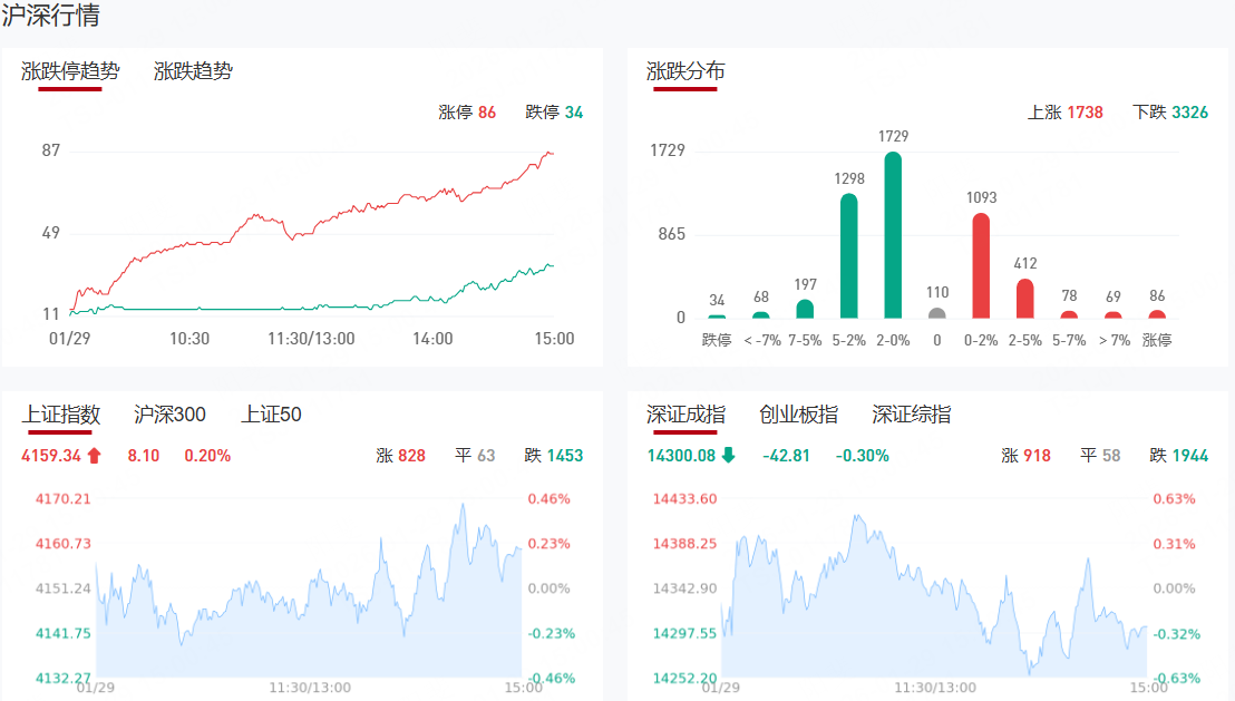 板块方面,石化油服、贵金属、白酒、房地产等板块表现活跃,半导体、芯片产业链等板块表现落后。截至收盘,沪指涨0.16%,深成指跌0.3%,创业板指跌0.57%。