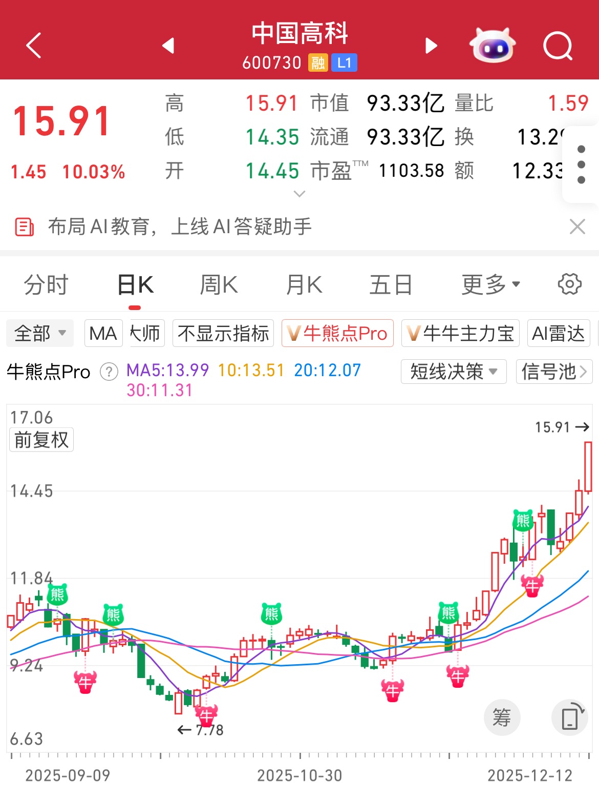 中国高科:控制权拟发生变更,股票12月15日起停牌(小九注:12月4日该股再次出现“牛”抬头,是否意味着这波右侧行情还将走的更远?点击查看>>)