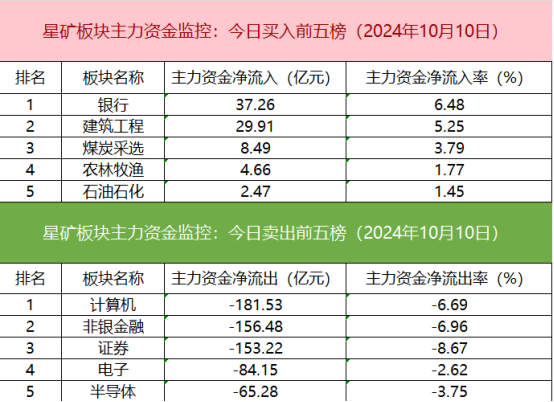 从主力板块资金监控数据来看,银行板块主力资金净流入居首。