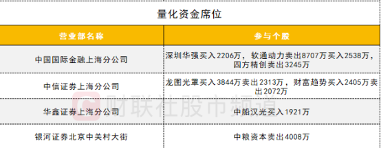 量化资金活跃度有所提升,软通动力遭一家量化席位做T。