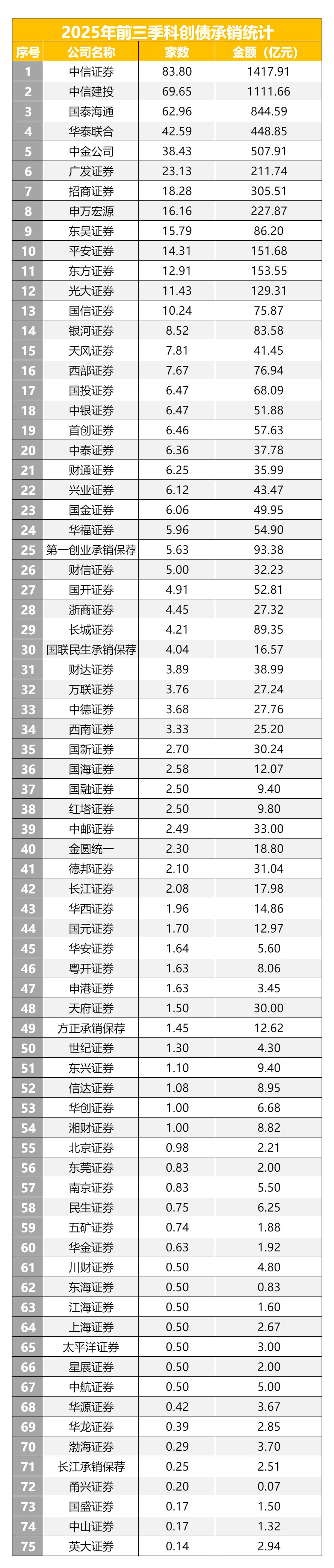 从券商表现来看,多家证券公司在相关债券承销中表现极为亮眼,头部效应持续强化,中小型券商则通过细分赛道突围。