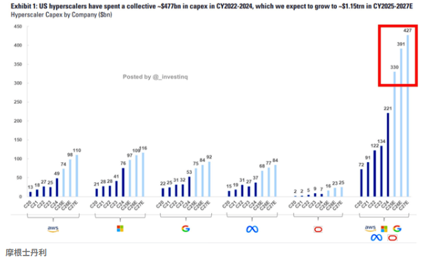 资本开支数据佐证这一趋势。摩根士丹利研究显示,2022-2024年间超大规模企业数据中心资本支出达4800亿美元,2025-2027年预计将猛增至1.15万亿美元。至2028年,全球数据中心投资规模可能突破1.6万亿美元,大部分资金将流向芯片和关键基础设施领域,形成拉动全产业链的现金流循环。