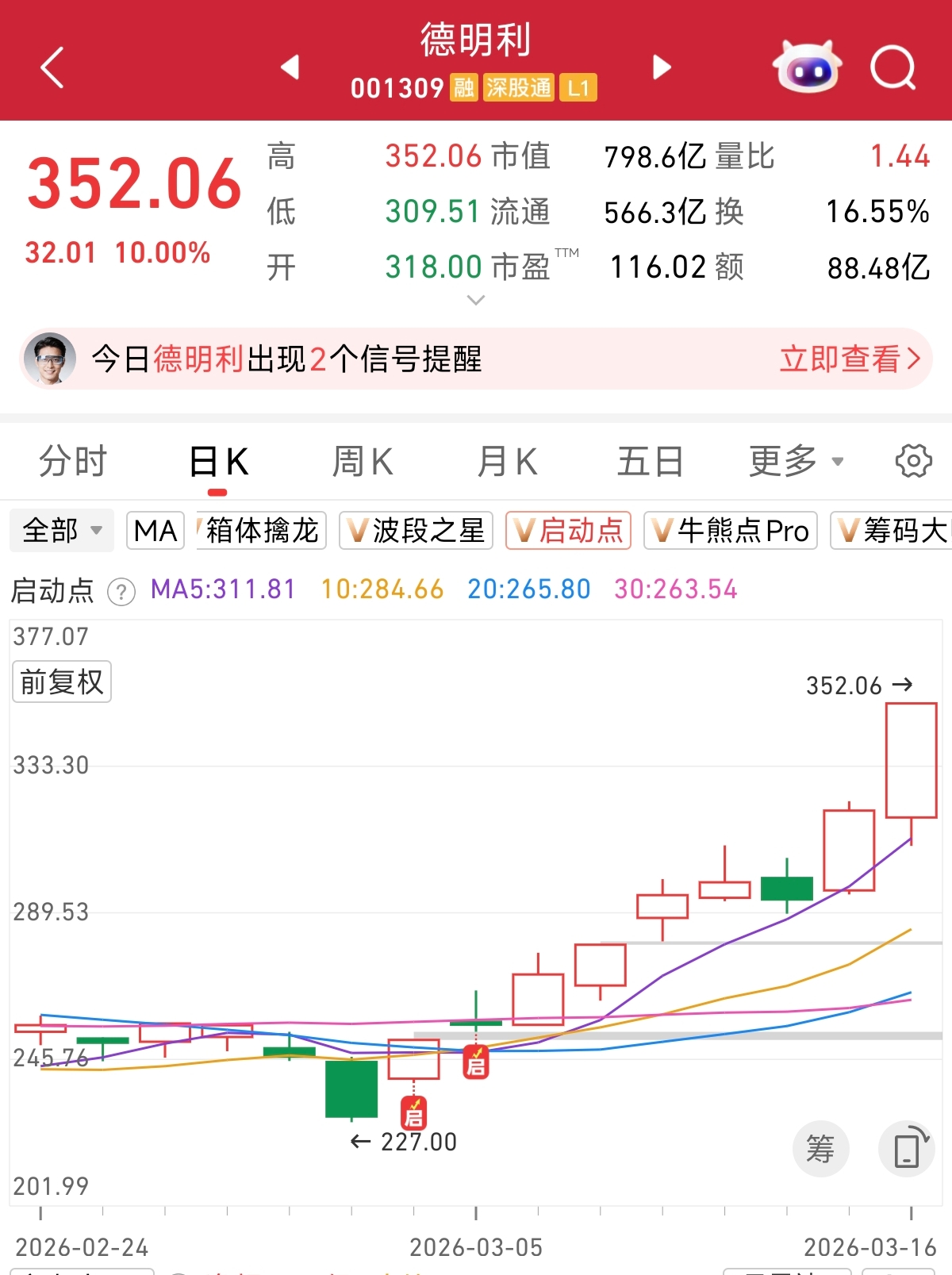 根据启动点监控,今日大涨的德明利,在3月4日出现“启动”信号,感兴趣的朋友可以自行跟踪判断。
