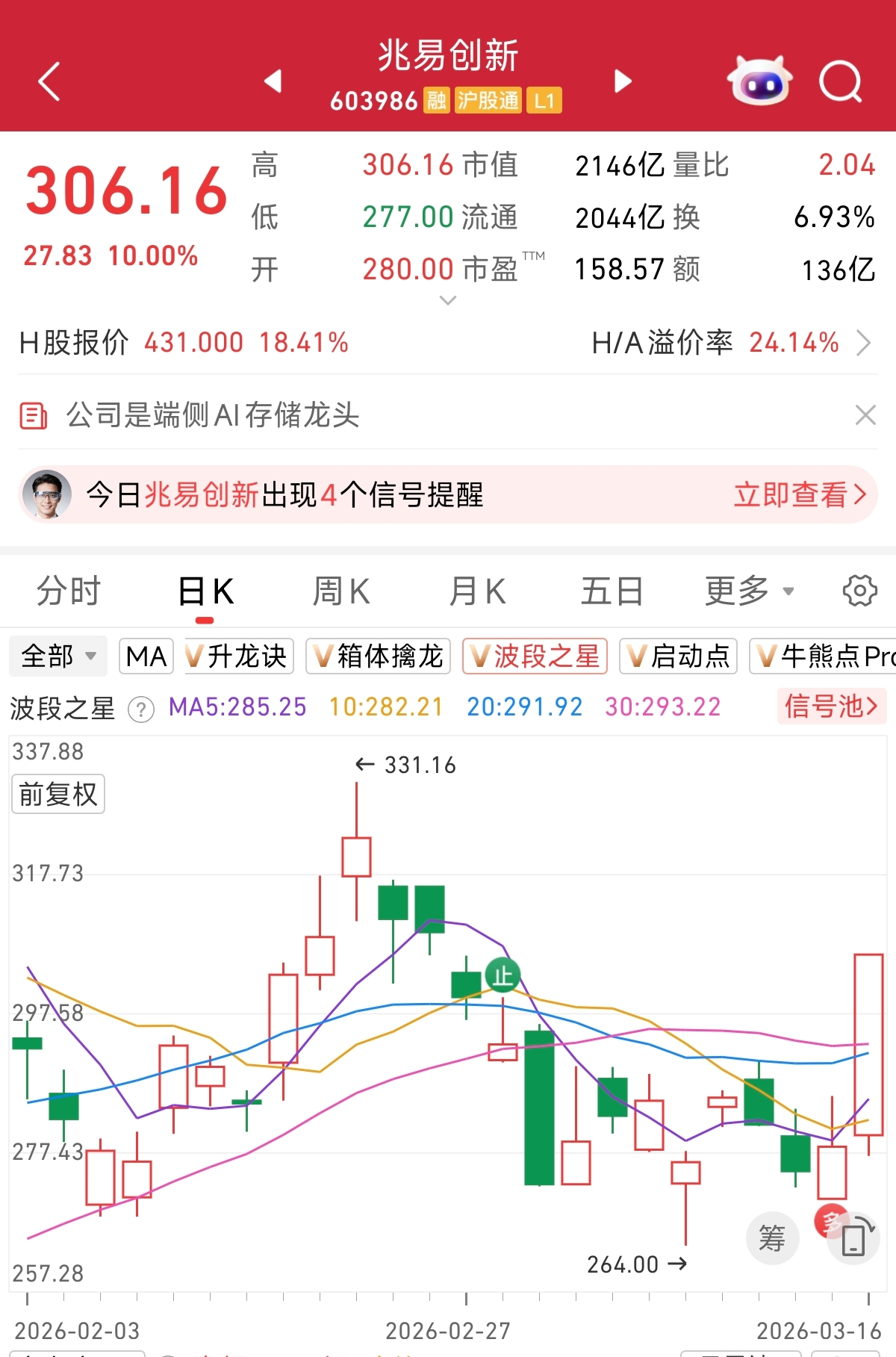 “AI硬件”作为市场关注的风口,我们解析一下它的长期逻辑和短期催化,帮助大家理解它背后的上涨原因。点此立即解锁“波段之星”,3月13日,兆易创新出现“多”信号,感兴趣的朋友可以自行追踪挖掘自选股的波段机会。