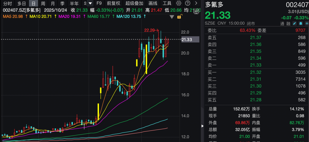 新能源与氟化工重点企业多氟多本周接受183家机构线上调研,多氟多前三季度累计实现营业收入67.29亿元,归母净利润7805.46万元,同比增长407.74%,盈利能力较上年同期显著提升。