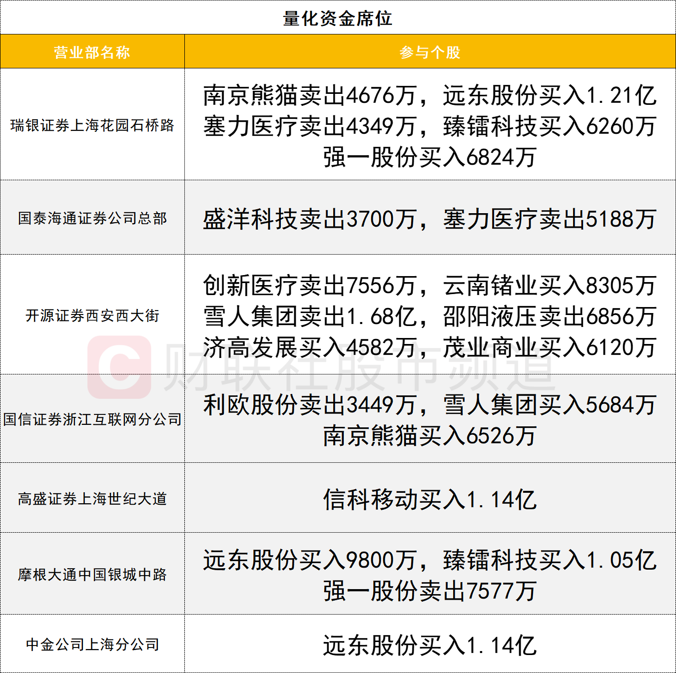 量化资金活跃度较高,远东股份获三家量化资金(瑞银证券上海花园石桥路、中金公司上海分公司、摩根大通中国银城中路)合计买入3.33亿。