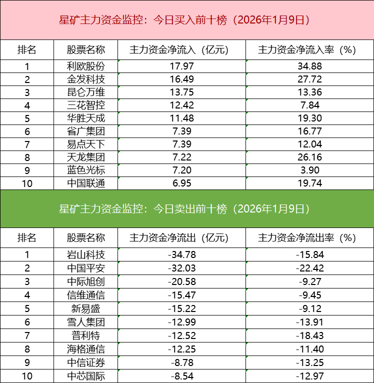 从个股主力资金监控数据来看,主力资金净流入前十的个股所属板块以AI应用方向为主,利欧股份净流入居首。