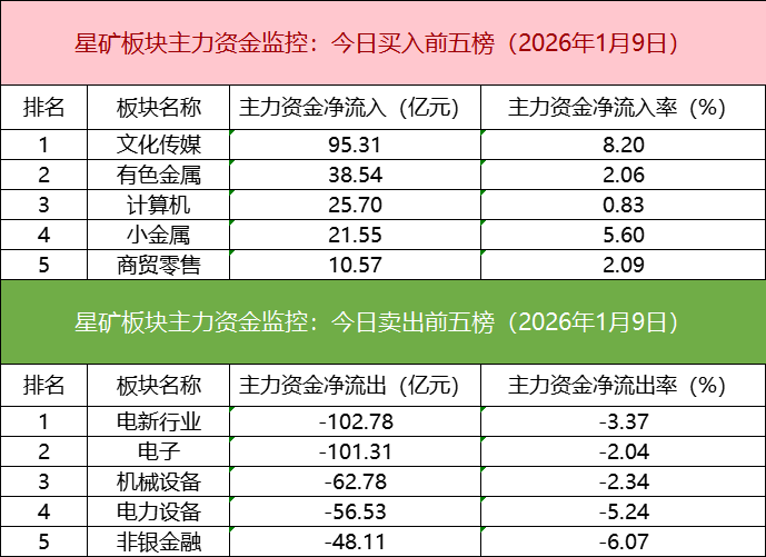 从主力板块资金监控数据来看,文化传媒板块主力资金净流入居首。