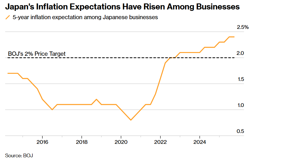 如上图所示,日本企业通胀预期已经显著上升。