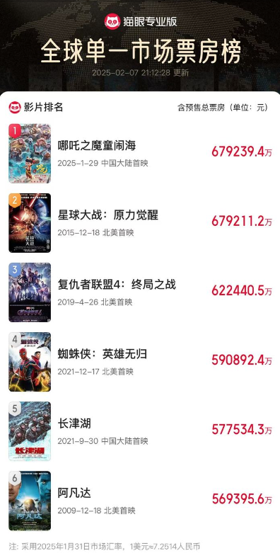 《哪吒之魔童闹海》!登顶全球影史单一市场票房榜