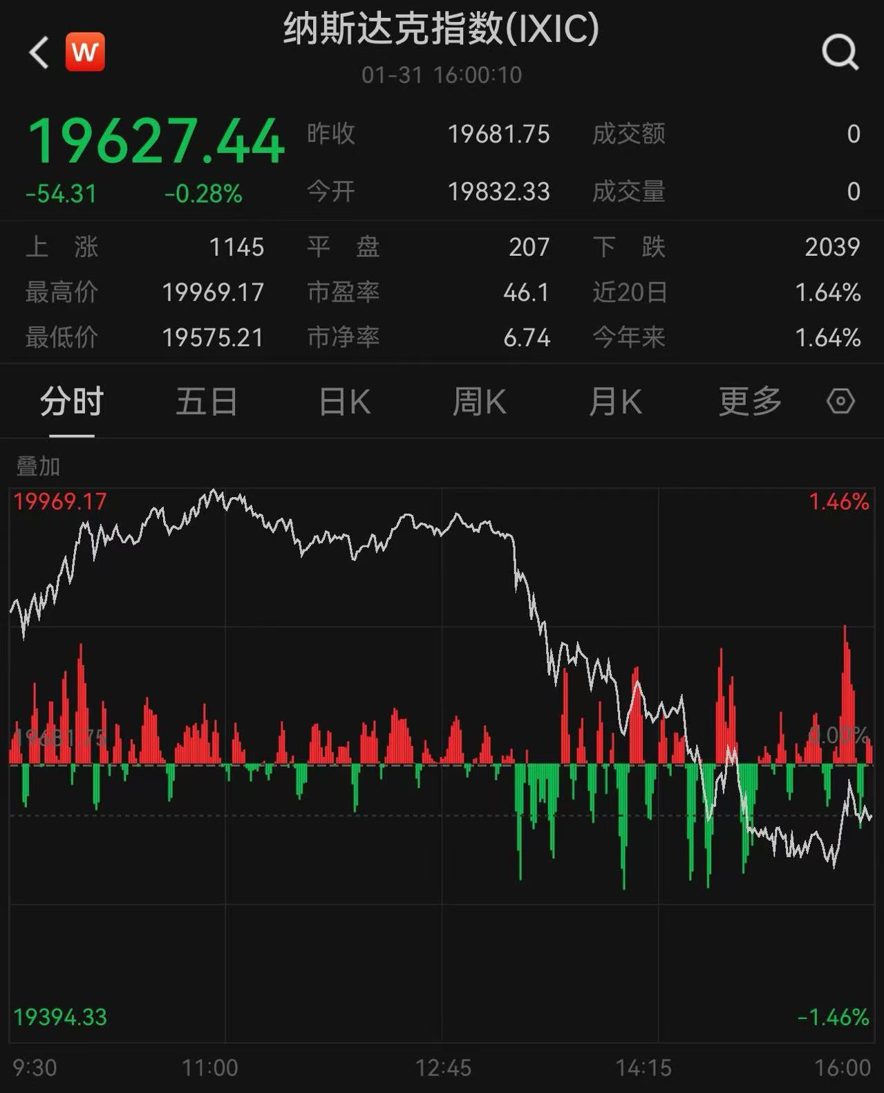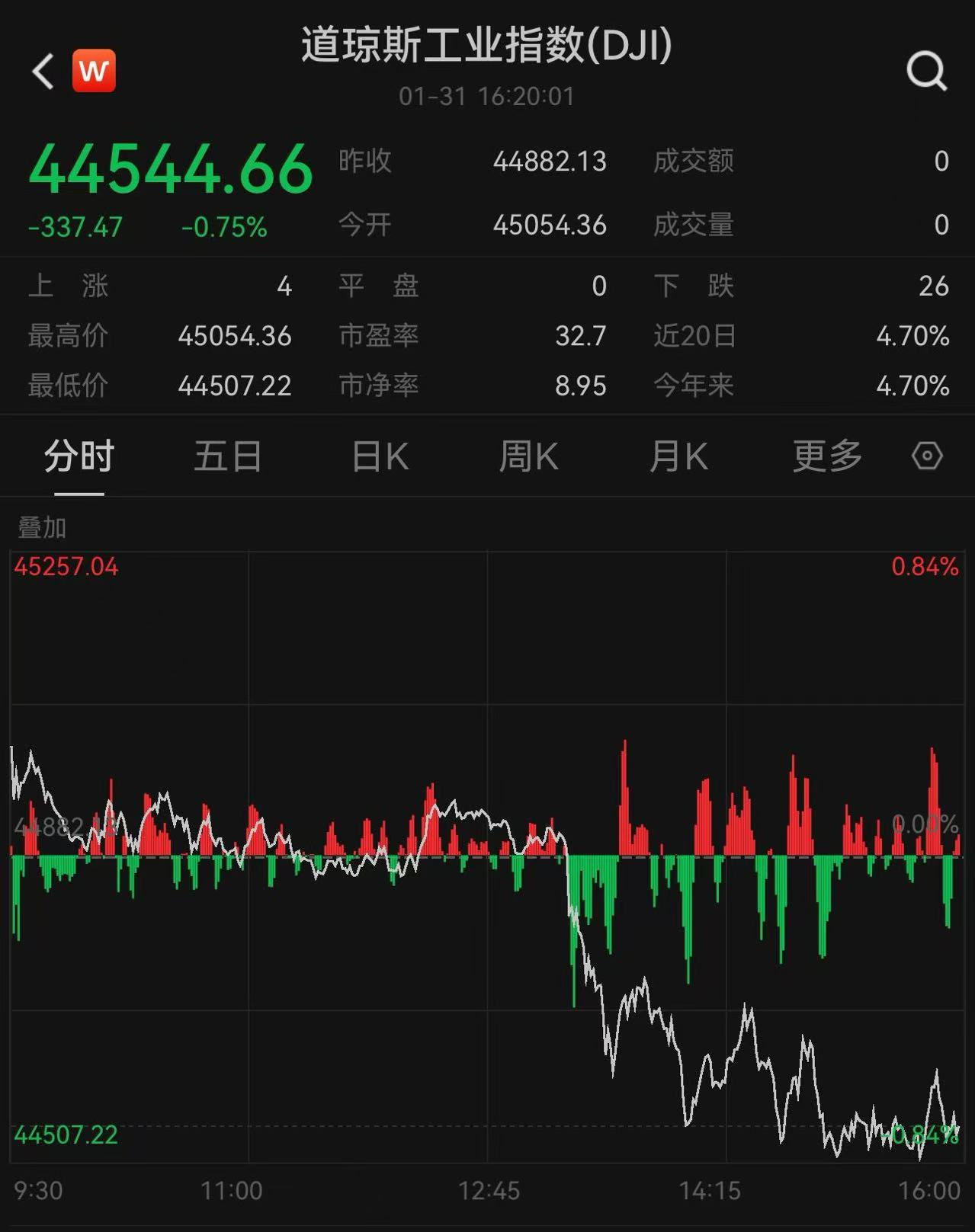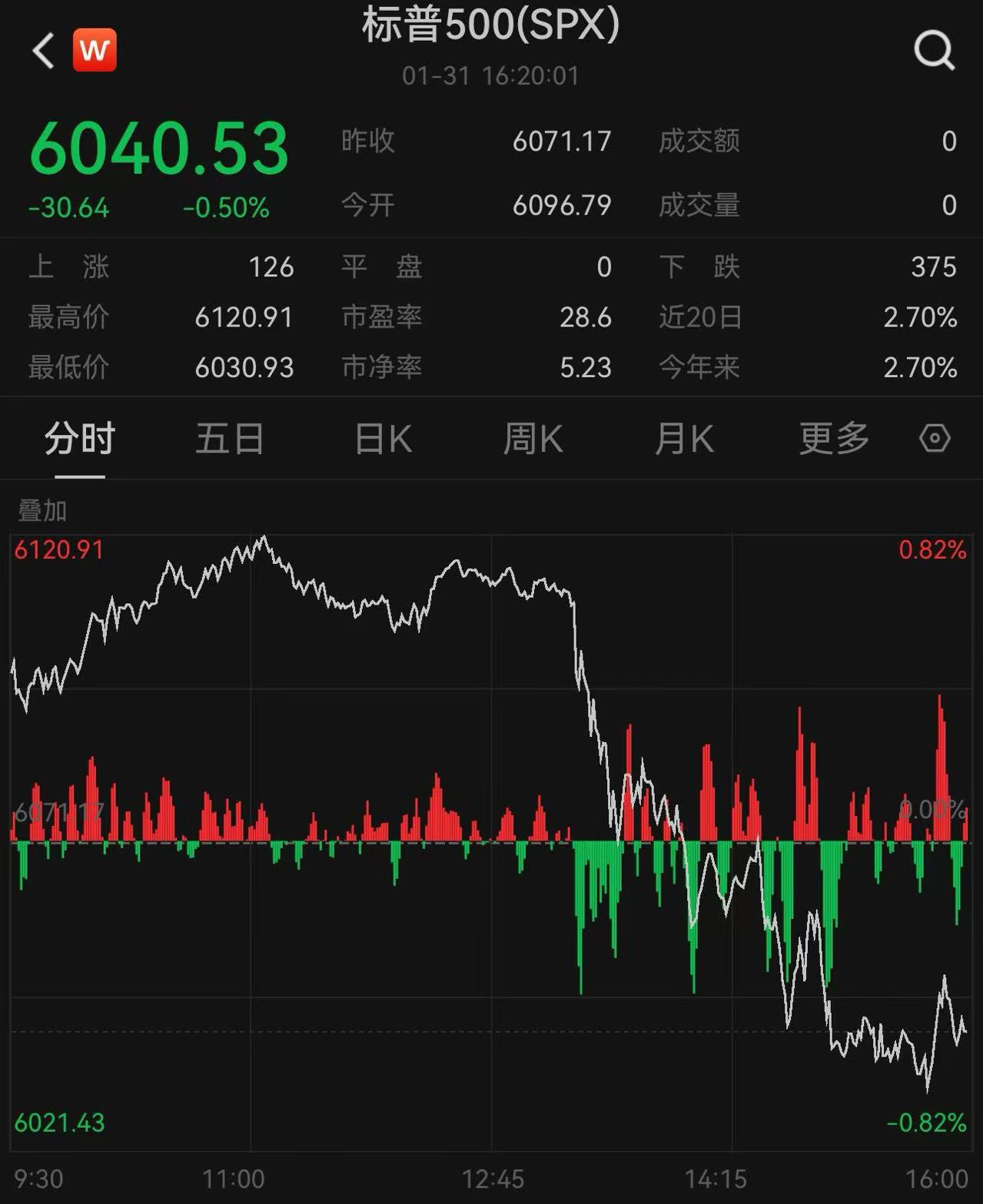 截至收盘,标普500指数跌0.5%,报6040.53点;纳斯达克综合指数跌0.28%,报19627.44点;道琼斯工业平均指数跌0.75%,报44544.66点。
