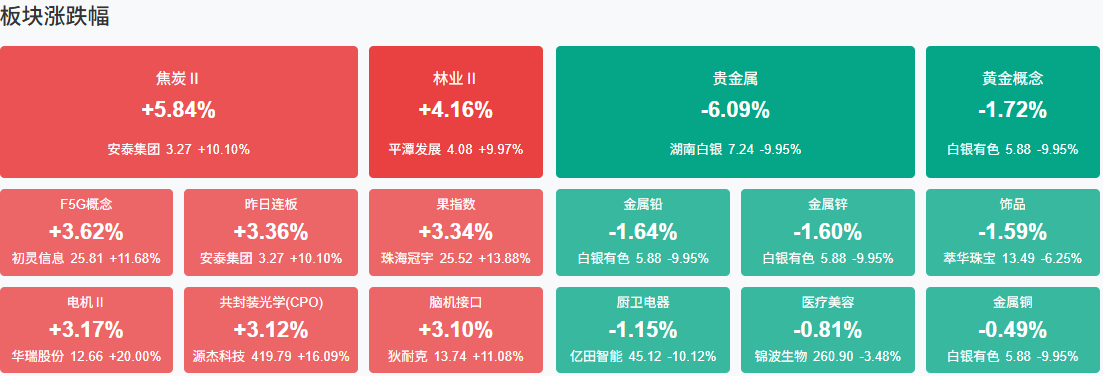 板块方面,煤炭、CPO、电池等板块涨幅居前,有色金属等板块跌幅居前。截至收盘,沪指涨0.69%,深成指涨1.38%,创业板指涨2.49%。