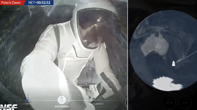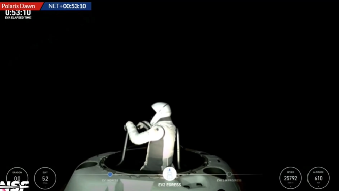 美国东部时间12日6时50分(北京时间18时50分),在比原定时间推迟数小时后,艾萨克曼身着马斯克旗下太空探索技术公司(SpaceX)研发的宇航服走出“龙”飞船,开始了人类历史上第一次商业太空行走。
