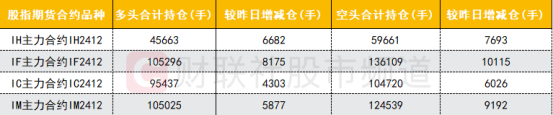 四大期指主力合约多空双方均加仓,且空头加仓数量均大于多头,其中IM合约空头加仓数量明显大于多头。