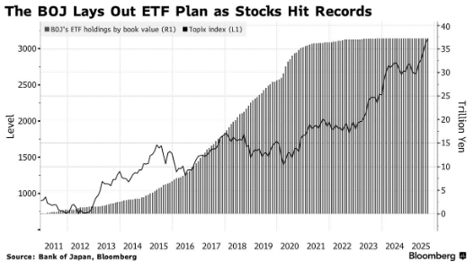 目前,日本央行通过ETF间接持有日本股市约7%的股份,若其减持操作出现误判、抛售规模超出市场承接能力,仍可能对市场造成冲击。