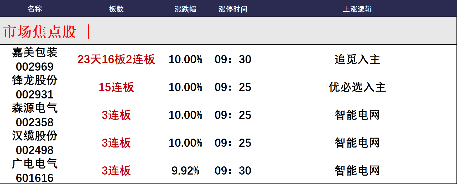 连板方面,除去连续一字涨停晋级15连板的锋龙股份外,市场高度被压缩至3连板。板块方面,电网设备板块延续活跃,汉缆股份、森源电气、广电电气均晋级3连板,新联电子4天3板,不过值得注意的是,板块尾盘跳水,三变科技、中国西电等人气股炸板;化工板块逆势拉升,沧州大化、新乡化纤2连板,维远股份、山东赫达、红宝丽等个股涨停,千亿权重万华化学涨超4%,恒力石化涨超6%。