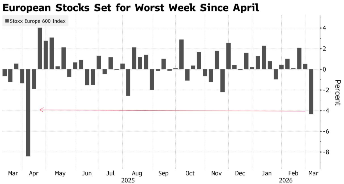 原标题:受伊朗战火冲击 欧洲股市或将创下去年4月以来最大单周跌幅