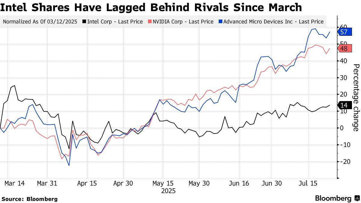 诚然,自3月陈立武上任英特尔首席执行官的消息公布以来,英特尔股价上涨了约19%,但与其竞争对手相比显得黯然失色。例如,英伟达(NVDA.US)同期股价飙升了近50%,AMD(AMD.US)股价更是上涨了64%。因此,当英特尔于本周四公布财报时,其CEO必须用清晰的盈利和收入增长路线图来说服市场,证明未来股价能够实现显著增长。