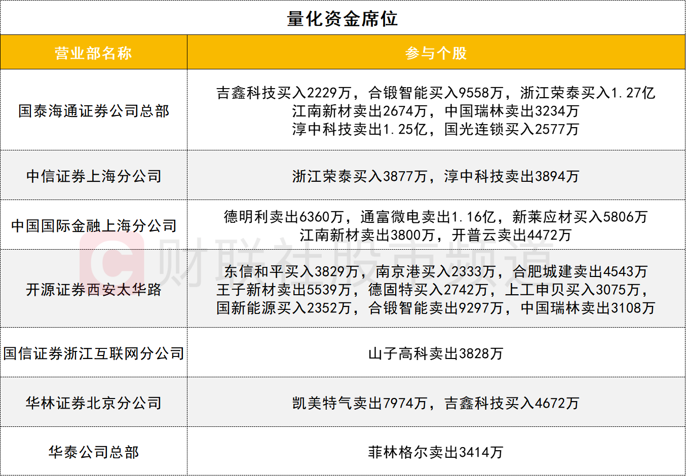 量化资金活跃度较高,通富微电遭一家量化席位(中金公司上海分公司)卖出1.16亿。新莱应材遭一家量化席位(中金公司上海分公司)卖出6360万。