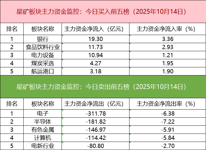 从主力板块资金监控数据来看,银行板块主力资金净流入居首。