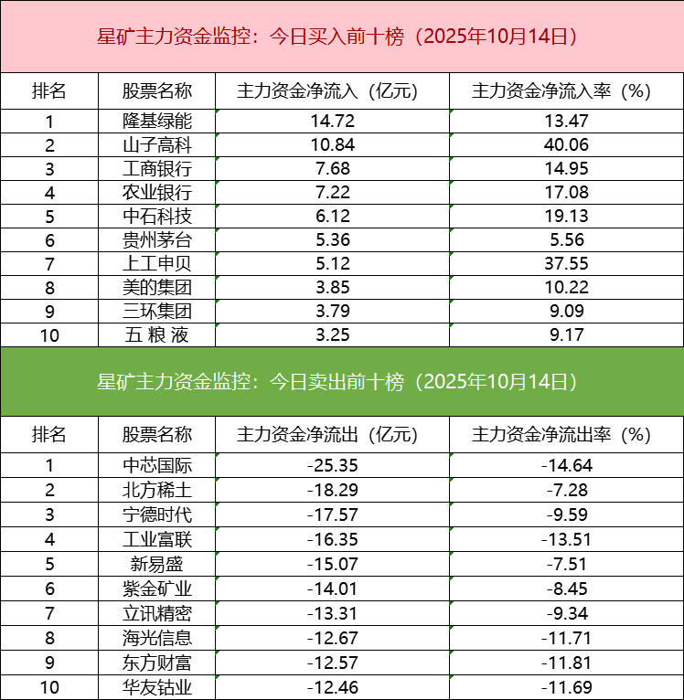 主力资金流出前十的个股所属板块较为分散,中芯国际净流出居首。
