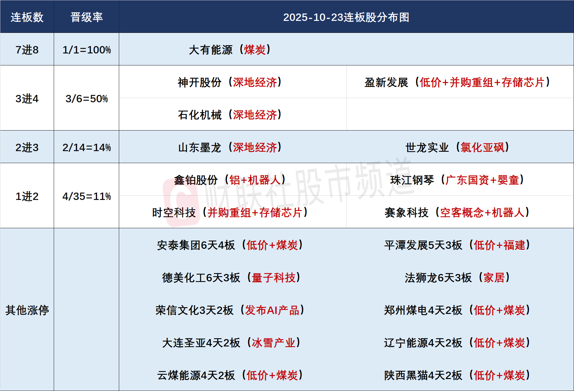 10月23日连板分析:再现高位退潮!低价煤炭股受热捧