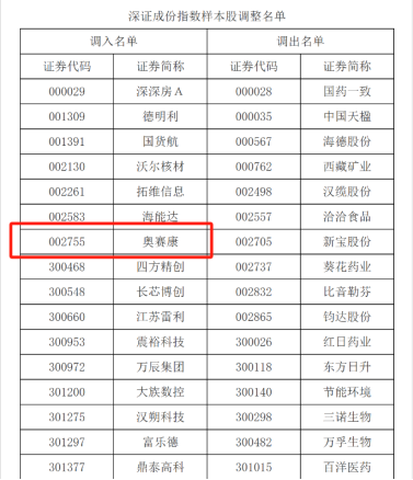 此次调整中,奥赛康(002755.SZ)凭借稳健的经营业绩、在医药领域的创新实力以及日益凸显的产品商业化落地能力,成功入选深证成指样本股。这不仅体现了资本市场对公司基本面与行业地位的高度认可,也标志着公司有望借此进一步提升市场流动性、优化投资者结构,并获得更多中长期资金的关注,为未来高质量发展注入新的资本活力。