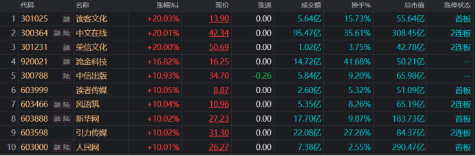 注:传媒股今日集体活跃(截至2月10日收盘)