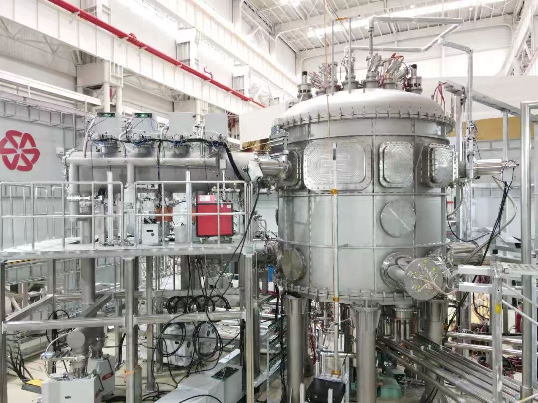 在成功实现了1337秒稳态长脉冲等离子体运行后,位于上海临港的能量奇点厂房内,全球首台建成运行的全高温超导托卡马克装置“洪荒70”,正在进行基于AI的等离子体控制算法更新、诊断设备升级,并增设温度测量相关工作。