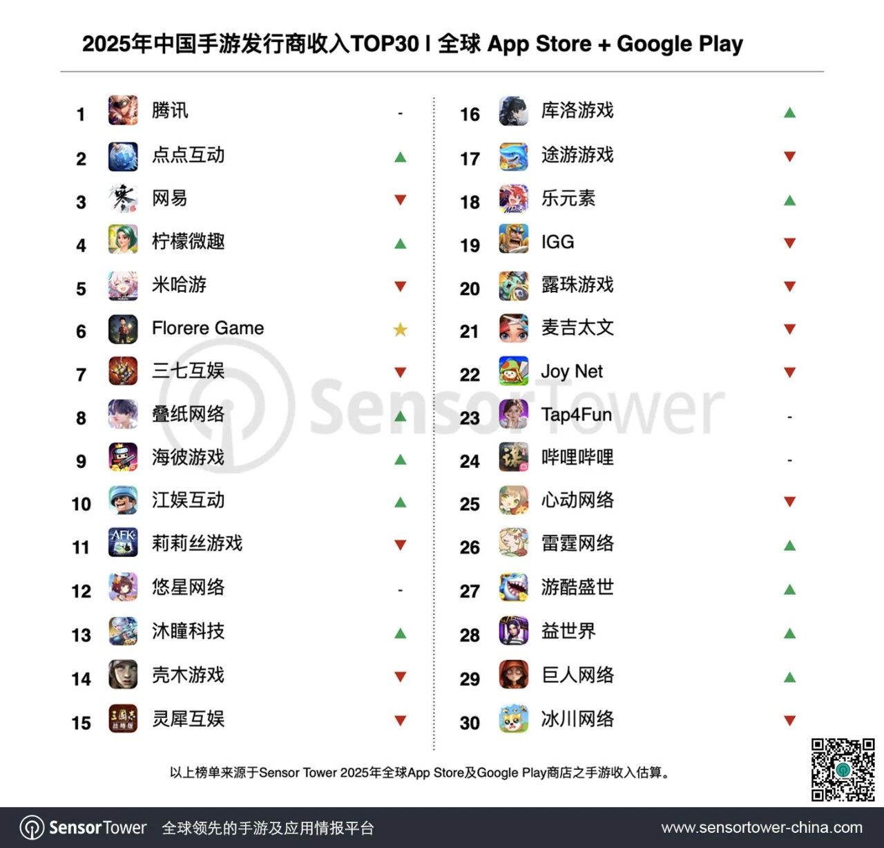 点点互动2025年全球收入激增87%,跃居收入榜亚军,仅次于腾讯。旗下策略手游《Whiteout Survival》2025年收入同比上涨45%达21亿美元,连续24个月位列出海手游收入冠军,累计吸金40亿美元。