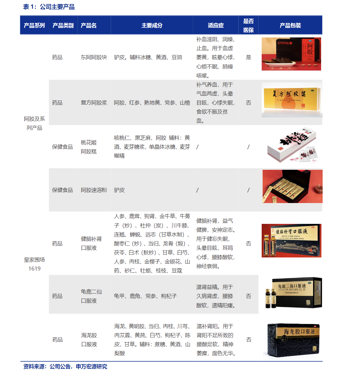 公司前身为山东东阿阿胶厂,1952年建厂,1993年由国有企业改组为股份制公司制企业,1996年在深交所挂牌上市,2005年加入华润(集团)有限公司。公司以“药品+健康消费品”双轮驱动发展,以阿胶块、复方阿胶浆等核心产品为基础,通过“阿胶+”和“+阿胶”策略,不断丰富产品矩阵,延展布局男性滋补领域,进一步拓展市场边界。
