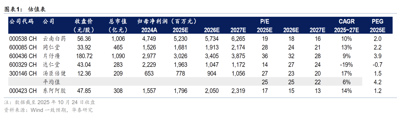 下一个五年阿胶、鹿茸、苁蓉有望齐头并进:2025年公司加速滋补品类扩张,鹿茸品类上与新西兰鹿业、吉林东丰、辽宁西丰战略合作,肉苁蓉品类上与阿拉善盟合作共建,人参品类上与正官庄战略合作,黄芪品类上与康缘药业合作推出黄芪精。我们认为“十五五”期间(2026~2030)公司有望逐步从阿胶领导者转向大滋补领军者,形成阿胶、鹿茸、苁蓉齐头并进的局面。