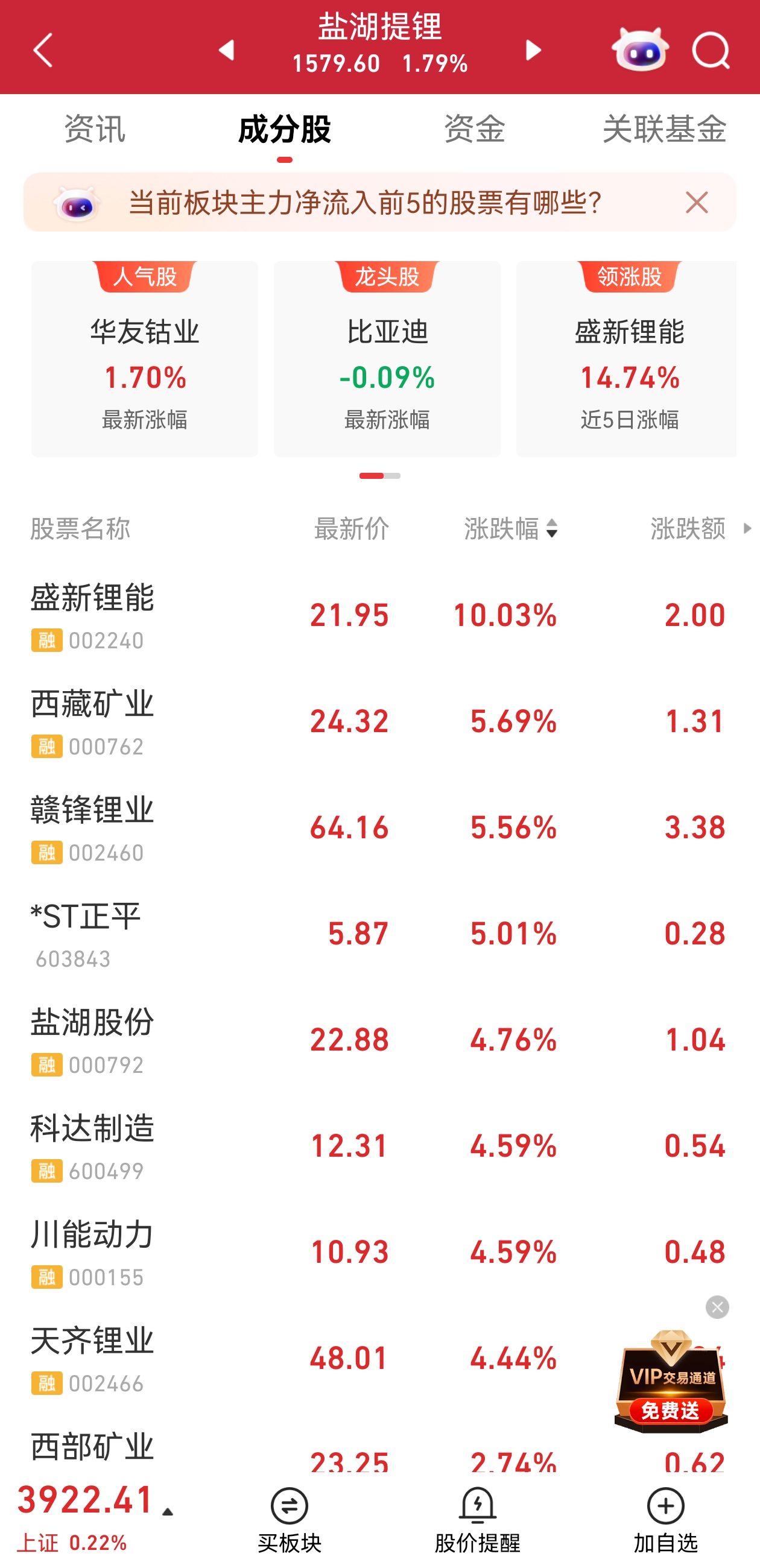 盐湖提锂板块尾盘走强,盛新锂能涨停,西藏矿业、赣锋锂业、盐湖股份涨幅居前。广期所碳酸锂主连合约收盘上涨4.17%,创9月以来新高。