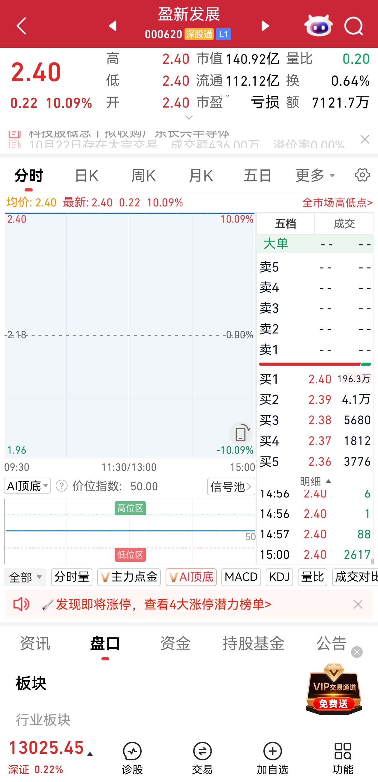 今日,盈新发展“一字”涨停,收获“四连板”。