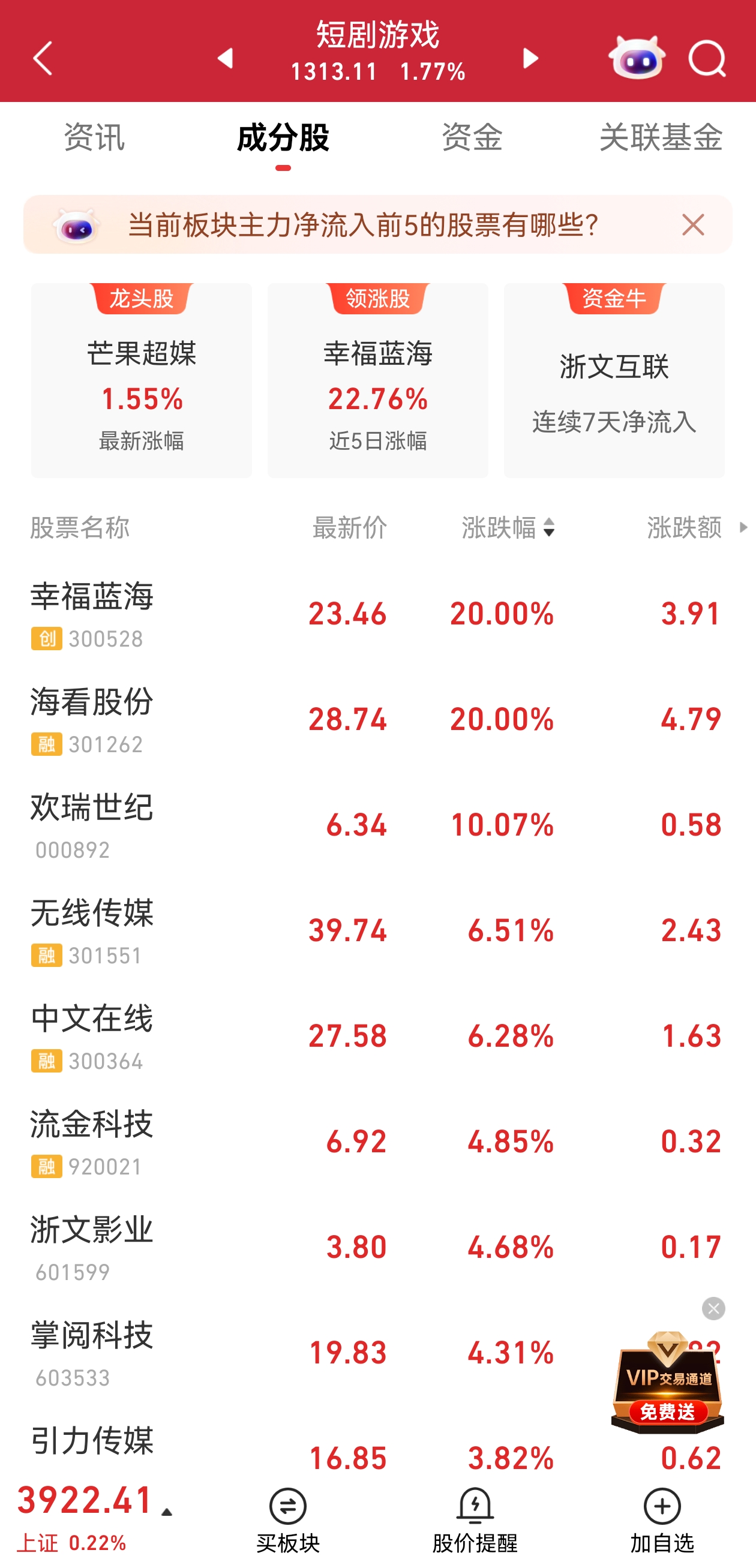 短剧游戏板块走强