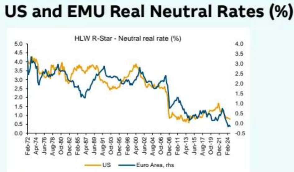 无论是称之为“长期停滞”(没有刺激就无法增长),还是用更专业的术语 “实际中性利率下降”,两代投资者都是在通缩世界中成长起来的,这一时代由技术与金融化的融合推动。这个时代有利于大多数资产的升值,尤其是那些最接近债务源头的资产(如金融和投机资产)和数字资本。实际利率的下降(美国从 20 世纪 80 年代的 3-4% 降至 0.5-1%,欧元区和日本则为 - 50 至 - 100 个基点),使得央行别无选择,只能通过降息和注入流动性来刺激经济。